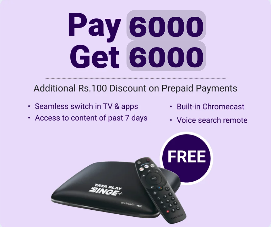 Enjoy the best of entertainment with Tata Play DTH, your go-to solution for high-quality digital television services. With an extensive range of channels, superior picture quality, and interactive features, Tata Play DTH brings the world of entertainment right to your living room.